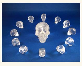 As any self-respecting quartz crystal would do, Max magnified everything in his field; good or bad, right or wrong, until it felt like “The Lord of the Rings” was descending upon our rapidly assembled and clueless Fellowship. Myth upon myth upon myth played out within our ranks. Hawaiian Vacation? Not. Hawaiian Initiation? Absolutely. Max, the artifact and the being, remain a mystery wrapped up in an enigma. Formed from five separate matrices of crystal, he could not have been carved by any tool we own without splitting him asunder. The manner of his creation remains unsolved, nor can his age be determined by our measurements. Who is this crystal skull who calls himself Max? According to a seven-year-old boy who Max spoke to last year in Santa Monica, he is 5 million years old and comes from a planet 80 planets distant from Alcyone, The Central Sun. His planet was destroyed, but he was evacuated before its fall and brought here, to this remote planet on the outskirts of the Milky Way. He is both the holder of the encoded information of his origin and is here to seed this planet with this information. Was the boy lying, or was the skull lying? We'll never know. Neither were administered a polygraph test. But, as Max's roommate for many weeks, I think neither were lying. Max is definitely not from this world. He's just pretending to be a Texan. (Keep in mind, the last Texan we knew who had rocks for brains could hardly have been considered a repository of any knowledge.) In accordance with both legend and prophecy, Max is one of 13 crystal skulls that were placed on this planet from other worlds. Each contains a specific body of knowledge from the place or its origin. Only when all 13 are finally assembled, as prophecy says they will be, the full impact of their presence and purpose will become known. As Patricio Dominguez, Pueblo Indian Spiritual Elder, has stated, "The crystal skulls are complete depositories of knowledge and each skull contains a particular specialist area of information — like a living library.... The knowledge that is going to come out from the skulls is quite unimaginable to our current minds. But [the fact] that it is definitely going to come out at a certain time is already foregone. It has been prophesied." And Cherokee Medicine Man, Harley Swift-Deer Reagan, says this: "The skulls were kept inside a pyramid in a formation of tremendous power known as the Ark. The Ark was comprised of the twelve skulls from each of the sacred planets kept in a circle, with the thirteenth skull, the largest, placed in the center of this formation. This thirteenth skull represents the collective consciousness of all the worlds. It connects up the knowledge of all the sacred planets."