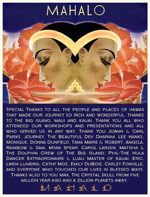Don Alejandro Cirilo Oxlaj Peres, Mayan Priest and Shaman, states: "...The prophecy says now is the time of the awakening. This is your job now, to awaken....For the Time of Warning has come to pass and the Warriors of the Rainbow are now beginning to be born. The Vale of Tears, the Nine Hells, is over and it is time to prepare for the 13 Heavens. The ancestors are returning, my brothers and sisters, and we do not have long. Now is the time that the prophecies will be fulfilled." The shaman of Siberia at Altai also speak of an event to take place very soon, heralded by the discovery of the buried body of the "Siberian Ice Maiden" in 1993. Bedecked in fine clothing, an exalted headpiece, and fine-crafted jewelry; she was laid to rest with respect and reverence some 6,000 years ago. To the shaman of Altai, she was not merely a spectacular archeological find, but a sign that the time had come for the great reunion of the fragmented family to which we all belong. The return was now assured, and upon this return we would be able to lay aside our blinders, remember our kin and reclaim our forgotten past. Add to all of this the Hopi Indians' words, "We are the ones we are waiting for." Perhaps there is good reason why we are still waiting. We are waiting for our fragmented self to be restored. We await the return of our ancestors, and the restoration of the 12-stranded DNA to which we are heir, presided over by the 13th skull, representing our collective consciousness made whole. The number 13 appears as a motif throughout our global saga. An unlucky number? Perhaps, but for whom? For Goldman Sachs? The Knights of Malta? Halliburton, British Petroleum, or a rabid left-brained oligarchy? All of them, probably; but not unlucky for the rest of us. The number 13, usually presented as 12+1, has appeared throughout our history. Jacob and his twelve sons equals 13, and Jacob's progeny spawned 13 (not 12) tribes of Israel, with the House of Joseph split between Joseph's two sons, Manasseh and Ephraim, which were counted as distinct tribes. Christ and his 12 apostles equals 13. King Arthur and his 12 Knights of the Round Table equals 13. This is the number of months in a natural calendar, and a key number in the Mayan Calendar. There were 13 original colonies that formed the United States, with Maine and Vermont not among them, except as included land masses. The Ascension Dome of the US Capitol Building depicts George Washington ascending to godhood (what?) surrounded by 13 Priestesses from the Roman Temple of Vesta. As William Henry proposes, perhaps this is not an allusion to the 13 original colonies, but instead speaks of a long forgotten cosmic confederation to which we are party and of which our Masonic founders had knowledge. It's worth consideration since how many capitol buildings on this planet have an ascension dome as the central image of their politcal world? How many countries were established for the sole purpose of freedom? Maybe our founders understood that political freedom was a hope, though probably a fatally flawed oxymoron. Actual freedom lie elsewhere. And then there is Max, one of 13 skulls prophesied to appear at the end of time, destined to attend a conclave that will usher in our freedom. All things considered, 13 doesn't sound particularly unlucky to me. As for why Max chose to visit Hawaii, that is the least mysterious question of all. These islands were breath-taking, tolerant beyond all measure, located in the middle of the Pacific Ocean, 2,000 miles from any major land mass. Ancient, complex, and kind; vestiges of another world, standing at the center of a divide. Not only are these islands the remnants of the Lemurian continent, long ago destroyed; but they lie at the crossroad, the corpus callosum, that divides the planetary body into right and left-brained sides. At this juncture, the East and the West collide. Here an ancient civilization still lingers in the air, hinting of the healing of the individual and global rift that spun us into separation, duality and descent so many eons ago. As Mark Twain, not especially noted for his mushiness, expressed of Hawaii: “No alien land in all the world has any deep, strong charm for me but that one; no other land could so longingly and beseechingly haunt me, sleeping and waking, through half a lifetime, as that one has done. Other things leave me, but it abides; other things change, but it remains the same. For me its balmy airs are always blowing, its summer seas flashing in the sun; the pulsing of its surf-beat in my ear; I can see its garlanded crags, its leaping cascades, its plumy palms drowsing by the shore; its remote summits floating like islands above the cloud rack; I can feel the spirit of its wooded solitudes; I can hear the splash of its brooks; in my nostrils still lives the breath of flowers that perished twenty years ago.” — Mark Twain - Paradise of the Pacific, April 1910 One hundred years later I cannot express his words any better, nor do I understand his words any less. I too fell in love with Hawaii, just as he did. Not so much for its incomparable physical beauty which would have been reason enough, but more so for the awesome spiritual presence that permeates and governs this island world. Kind, gentle, generous, loving, mysterious, psychic and feminine; it is the powerful and illusive, yet deeply grounded, Spirit of Aloha that pulls on my heart. I have never felt more honored or safer as a woman anywhere else in this world. The Hawaiian language is another mystery. By some accounts, the Lemurians came to this planet from another world to the lands of which Hawaii is now a vestige. These beings were telepathic; the indigenous population they encountered was not. They consequently devised a language to communicate not only their thoughts, but also their consciousness. The language they created was both a means of audial communication and a spiritual code. That language is Hawaiian. Multi-layered, eve