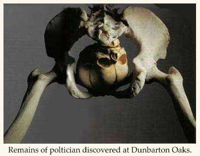POLITICIANS GO MISSING WORLD WIDEMission Control and Associated Presses – Countries throughout the world have reported missing politicians. Possibly connected with the global awakening, many former representatives and agency heads have simply disappeared without trace. The Washington DC Police Department has reported a possible break in this mysterious case of the missing leaders. The DC Police discovered a skeleton in a garden bed on the grounds of Dunbarton Oaks, located in the U.S. Capitol. The police stated, “It's definitely a politician, but forensics has been unable as yet to determine whether the remains are a Democrat or a Republican. A further complications is that the skeleton was clothed in an 'AS Roma' jogging suit and was wearing 'UK Gear' running shoes, suggesting that the skeleton might be European, and may actually be a Democrat or Republican posing under some other name.” When questioned how they knew the remains were a politician, the DC Police Chief stated that the skeletal position and posture were conclusive evidence, but the country of origin still remained unclear. After viewing the evidence presented by the DC Police Department, Interpol requested permission to send forensic teams from both Italy and the United Kingdom to further study the remains. Both nations, also missing politicians, were convinced that the evidence might lead to positive identification of their missing representatives, who fit the DC Police description.